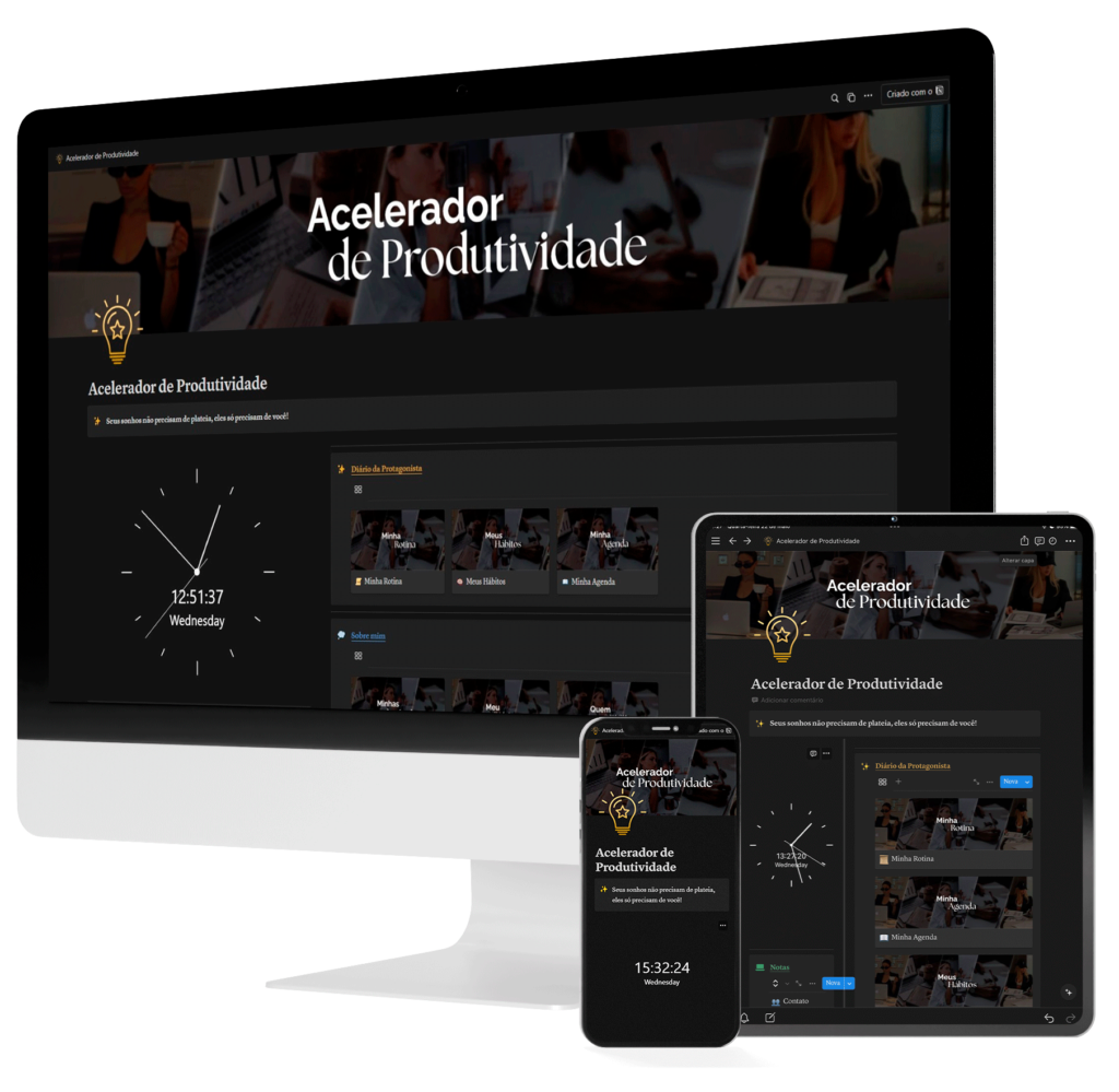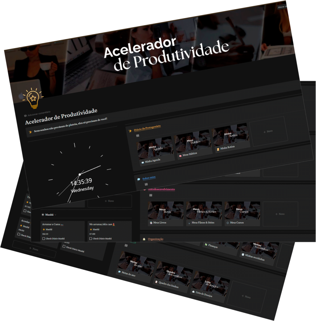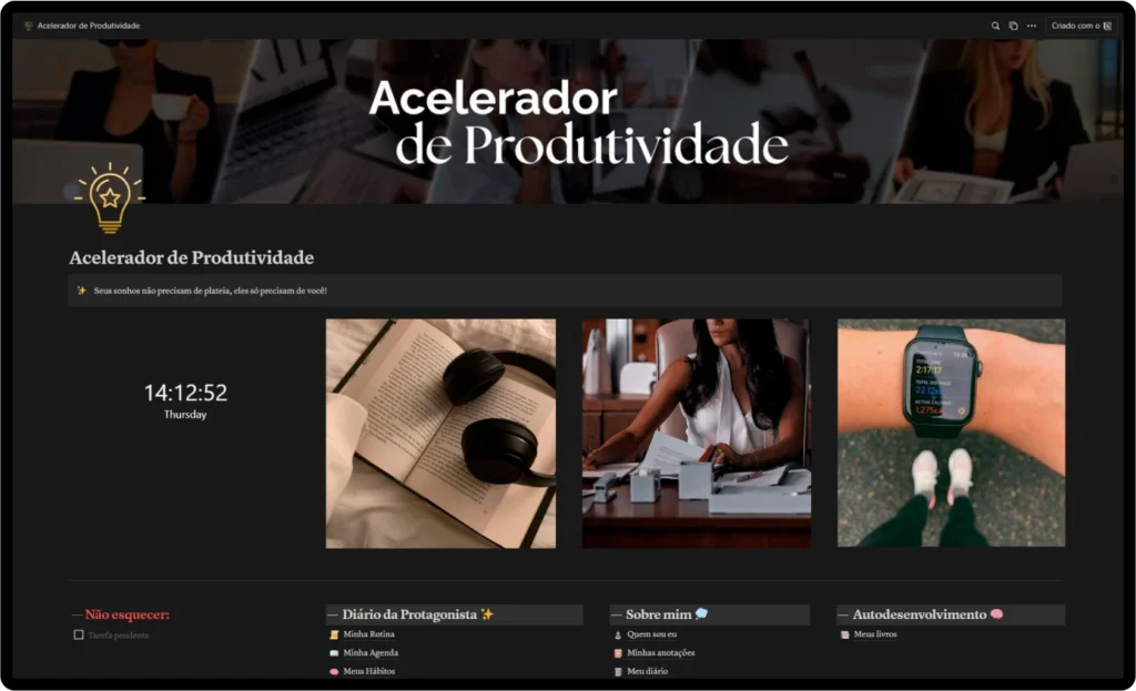 Acelerador de Produtividade com todas as seções inclusas + vídeo-aula sobre como usar + Acesso Vitalício + Glow Like a Boss…